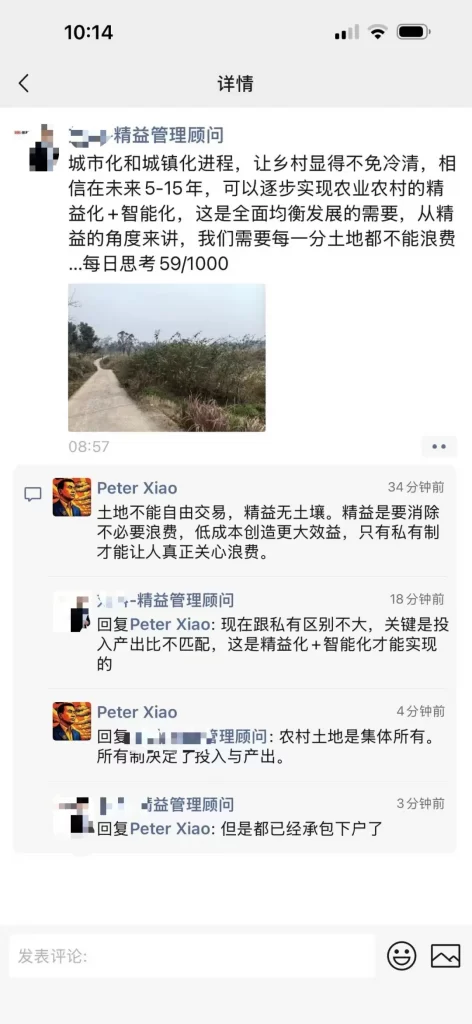 看到这句话,我忍不住回了一句:「土地不能自由交易,精益无土壤。精益是要消除不必要浪费,低成本创造更大效益,只有私有制才能让人真正关心浪费。